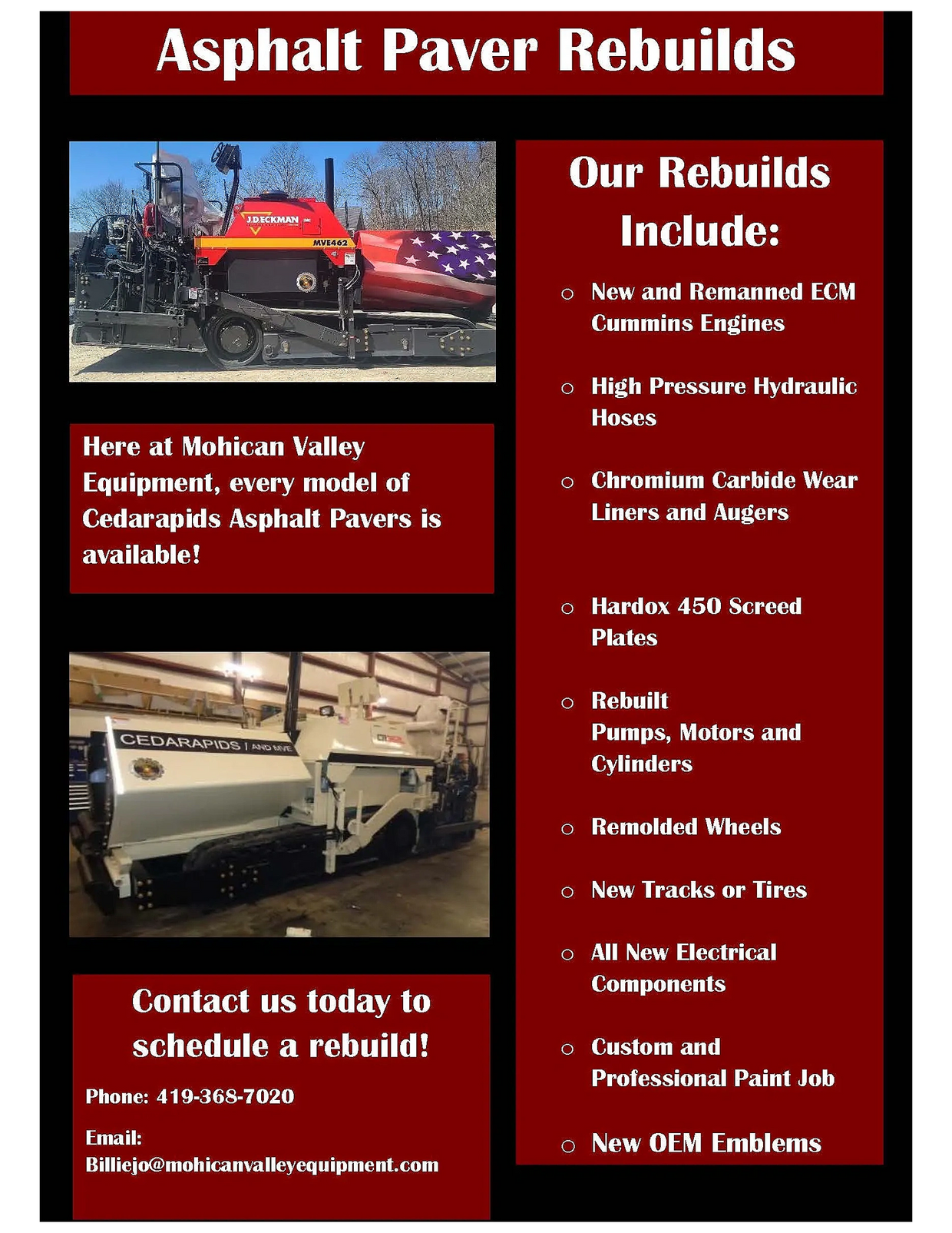 ORDER THE PARTS YOU NEED OR SCHEDULE A REBUILD: Call (419)368-7020